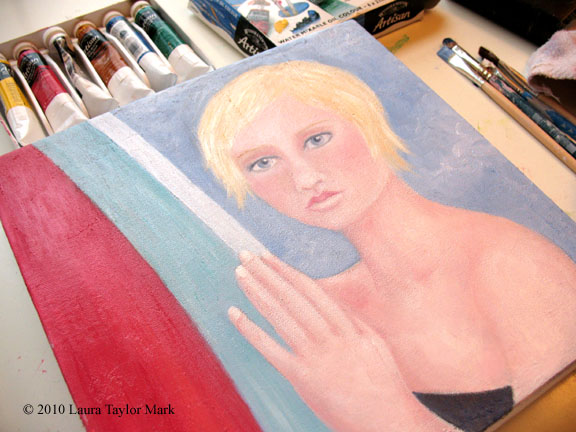 'surfer girl' 10x10, gallery wrapped canvas, oil